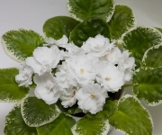 АВ - Мимими (Фиалковод) Белые махровые розочки с красивой темно-вишневой гофрированной каймой. Малый стандарт, очень компактная розетка со средне-зелеными слегка волнистыми листьями. Букетное цветение. Нет в наличии | |